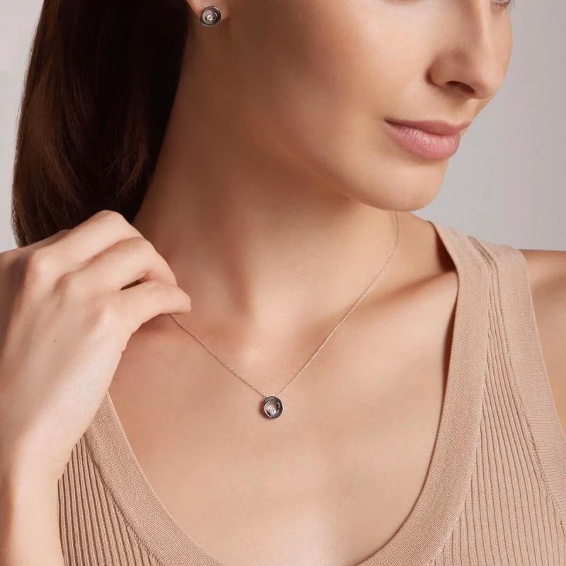 De juwelen van Annamaria Cammilli kenmerken zich door creatief vakmanschap en de verfijnde driedimensionale vormen worden versterkt door een combinatie van gepolijste oppervlakken en de zijdeachtige, fluweelachtige afwerking van de Aetherna-methode. Met diamanten van verschillende groottes.